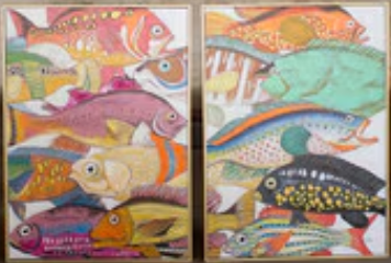 SET OF TWO COLORFUL FISH WITH GOLD FRAME ACRYLIC PAINTING